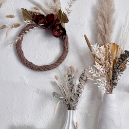 Wreaths, table arrangements, signage, and floral inserts for cards and invitations.